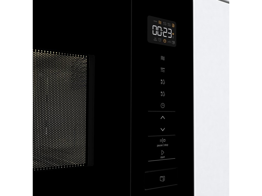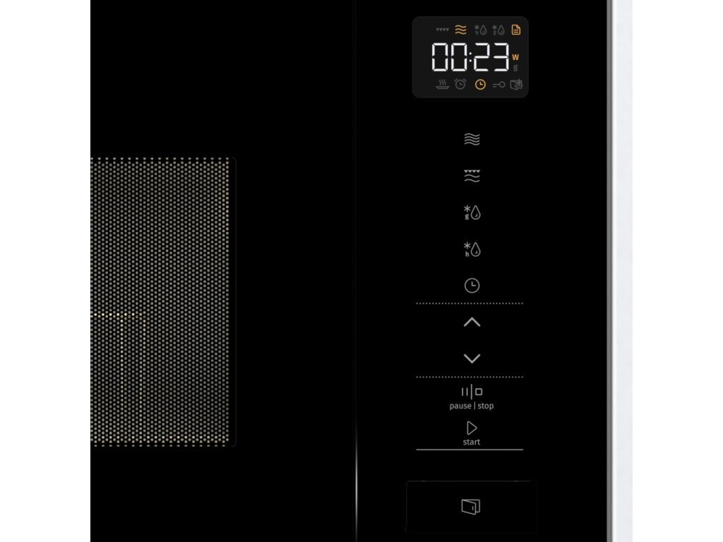 Kompaktní vestavná mikrovlnná trouba s funkcí grilu, ideální pro menší domácnosti nebo kuchyňské linky s omezeným prostorem. Nabízí rychlé ohřívání, rozmrazování a možnost grilování pro křupavé pokrmy. Funkce AquaClean umožňuje snadné čištění párou, zatímco dotykové ovládání s LED displejem zajišťuje jednoduché a intuitivní používání.