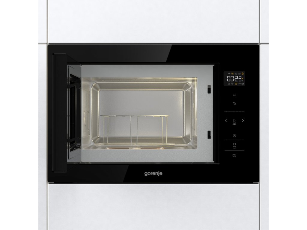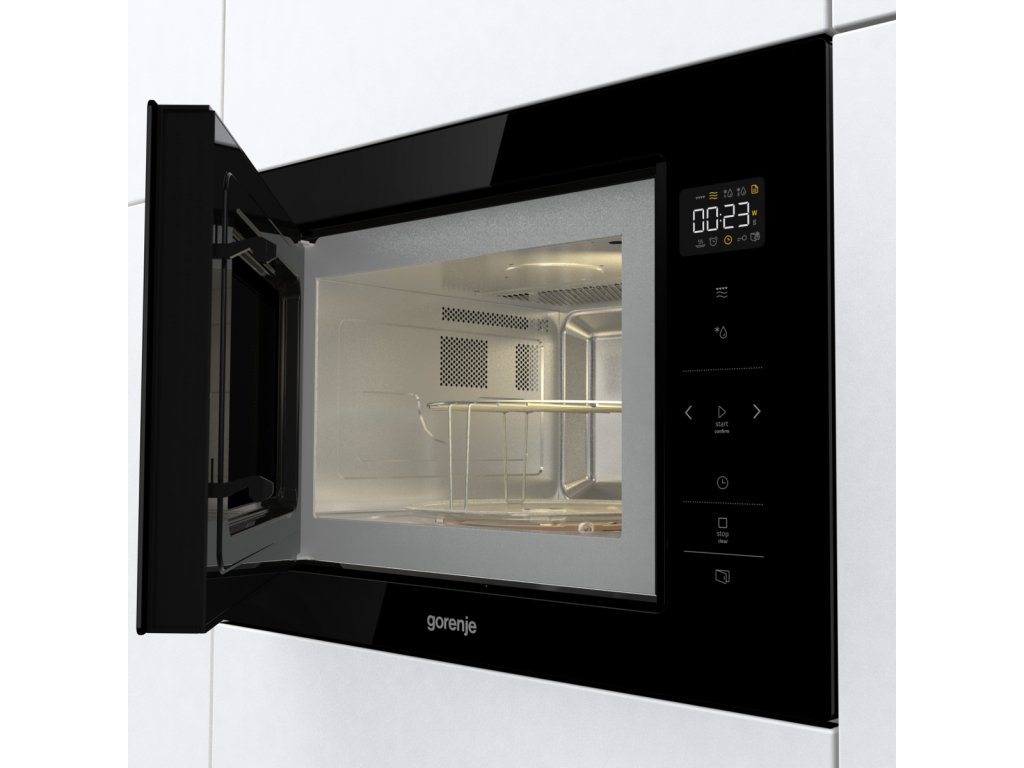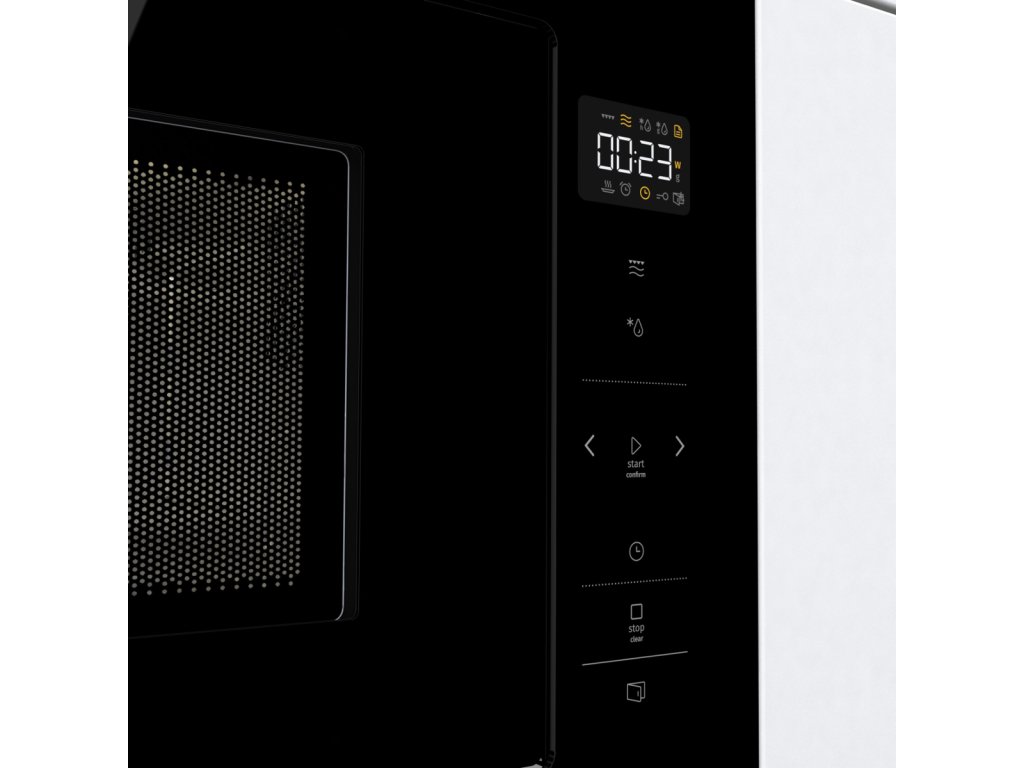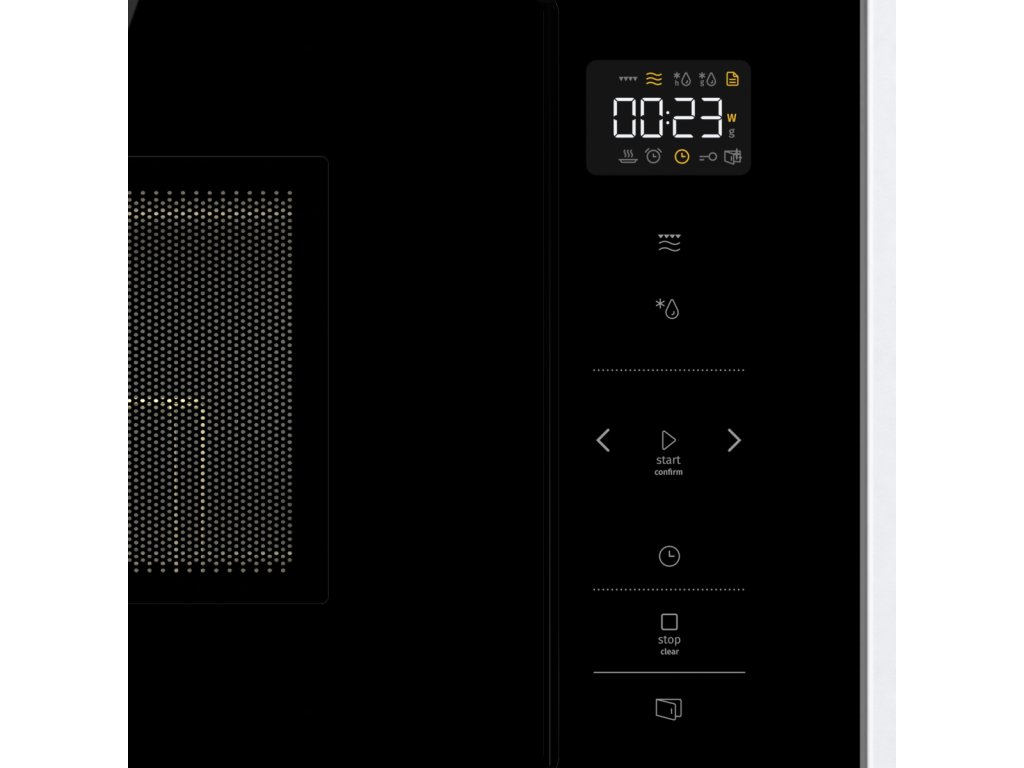 Moderní vestavná mikrovlnná trouba s funkcí grilu pro rychlé ohřívání, rozmrazování a přípravu jídel s křupavou kůrkou. Díky dotykovému ovládání a LED displeji je používání jednoduché a přehledné. Funkce AquaClean umožňuje snadné čištění párou bez chemie.