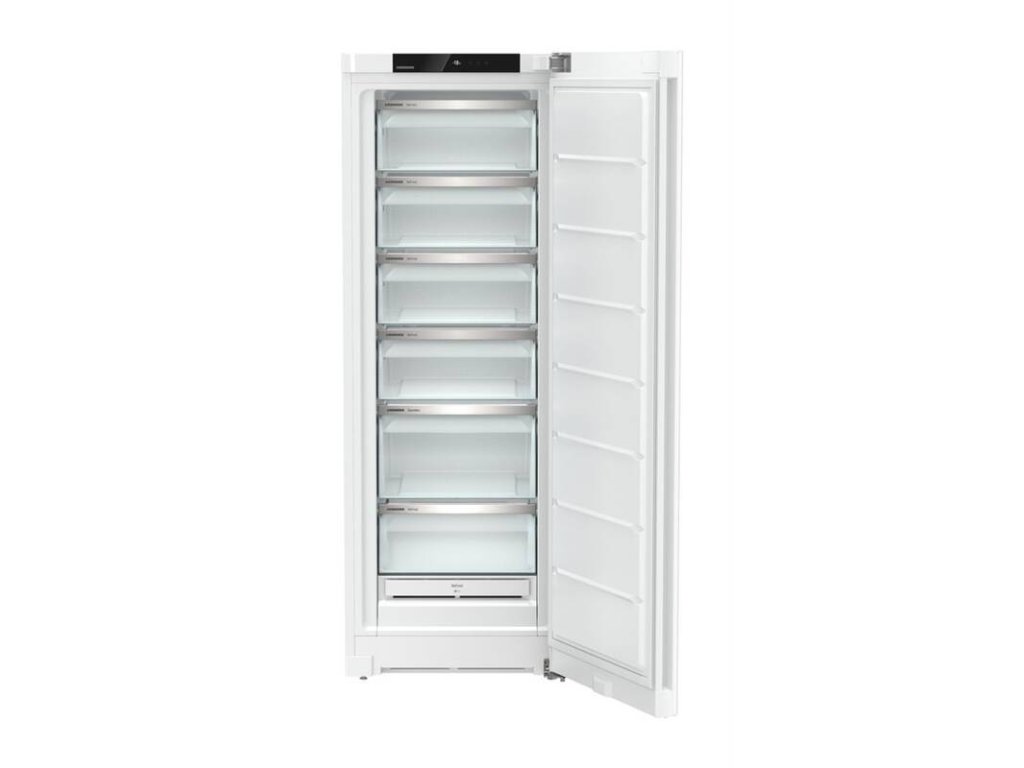 No Frost skříňová mraznička • výška 165,5 cm • objem 239 l • energetická třída D • varovný signál při otevřených dveřích a při zvýšení teploty • funkce Supermrazení • mrazicí výkon 17 kg / 24 hod. • doba skladování při poruše 16 hod. • dotykový displej • možnost změny směru otevírání dveří • V × Š × H: 165,5 × 59,7 × 67,5 cm