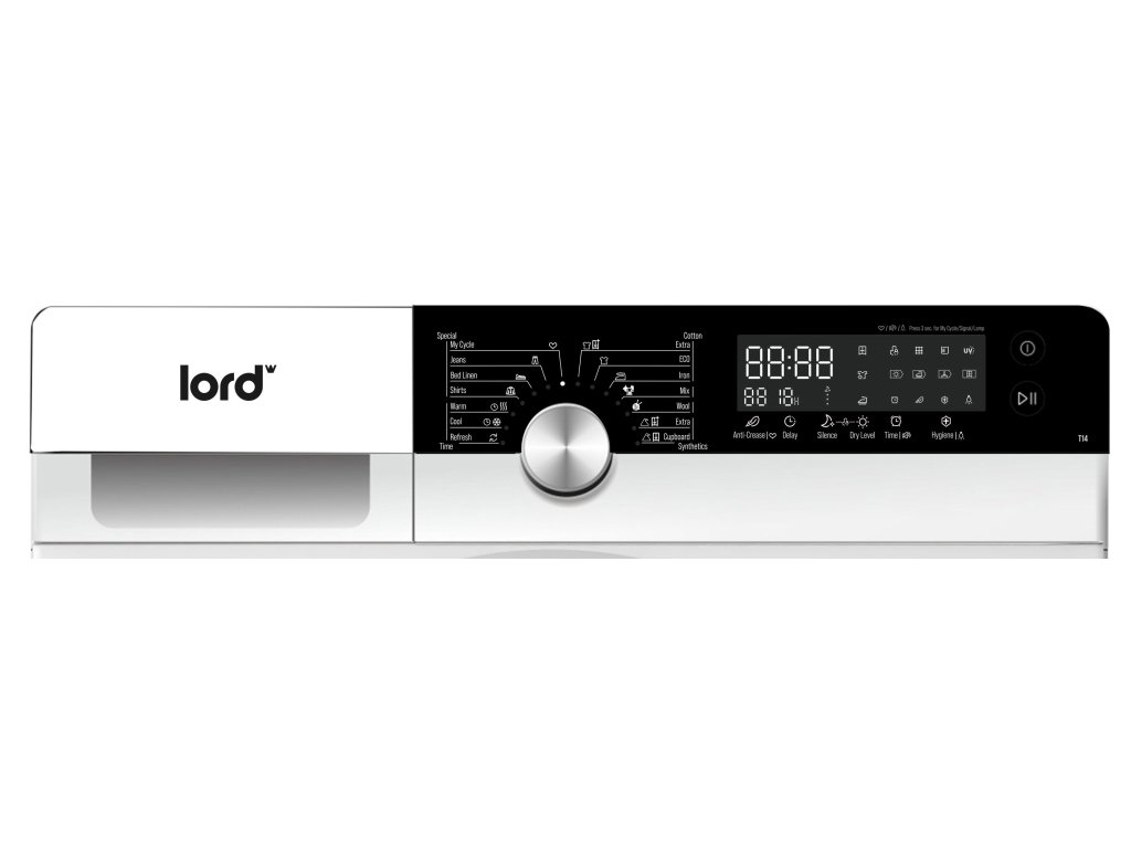 LORD T14 je kondenzační sušička s tepelným čerpadlem a kapacitou 9 kg prádla, vhodná pro domácnosti hledající úsporné a efektivní sušení. Zařízení nabízí 14 programů pro různé druhy textilií, včetně bavlny, syntetiky, vlny či sportovního oblečení, a využívá senzorové řízení vlhkosti, které automaticky upravuje délku cyklu pro optimální výsledek.