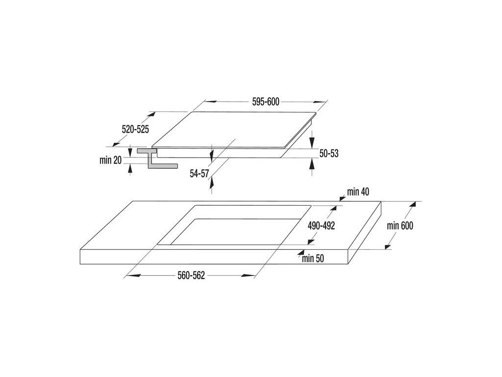 sklokeramická varná deska • šířka 60 cm • 4 varné zóny • připojení 400 V • zbroušené hrany • mechanické ovládání • signalizace zbytkového tepla • V × Š × H: 5,4 × 60 × 52 cm